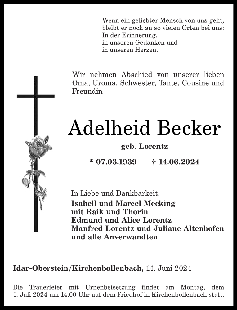 Hier finden Sie alle Traueranzeigen aus der Zeitung, die bisher für Adelheid Becker erschienen sind. Weitere Traueranzeigen, die in der Zeitung erscheinen, werden hier ebenfalls aufgelistet