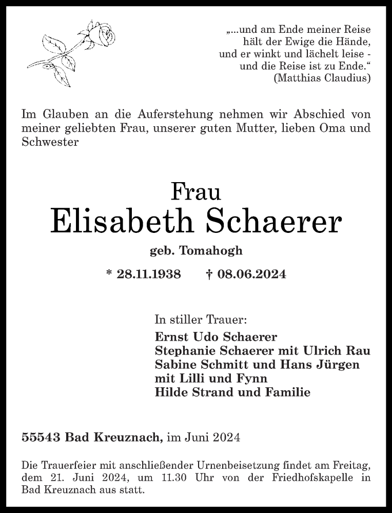 Hier finden Sie alle Traueranzeigen aus der Zeitung, die bisher für Elisabeth Schaerer erschienen sind. Weitere Traueranzeigen, die in der Zeitung erscheinen, werden hier ebenfalls aufgelistet
