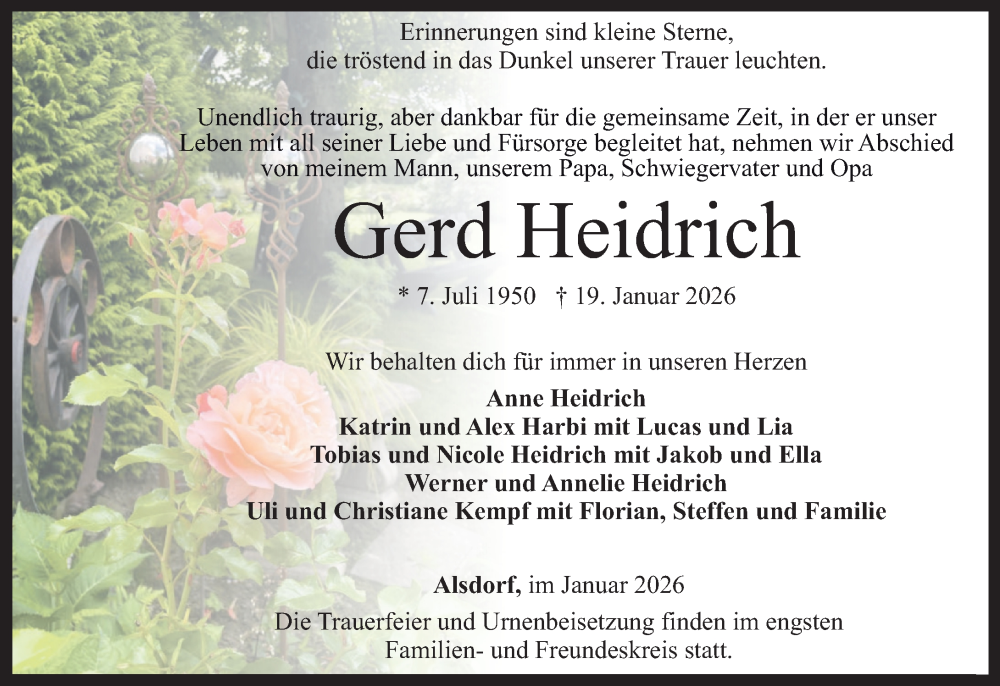 Hier finden Sie alle Traueranzeigen aus der Zeitung, die bisher für Gerd Heidrich erschienen sind. Weitere Traueranzeigen, die in der Zeitung erscheinen, werden hier ebenfalls aufgelistet