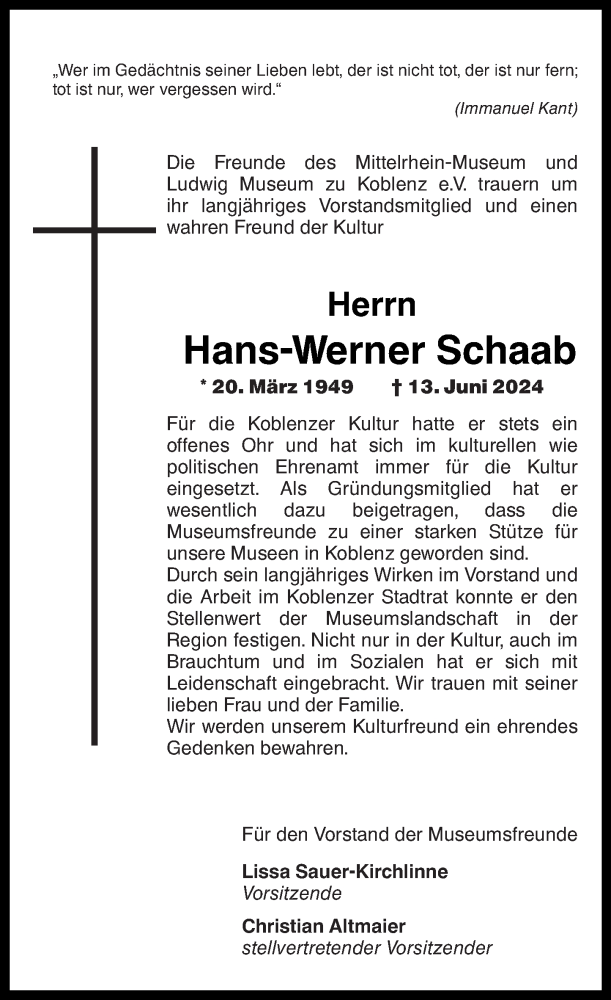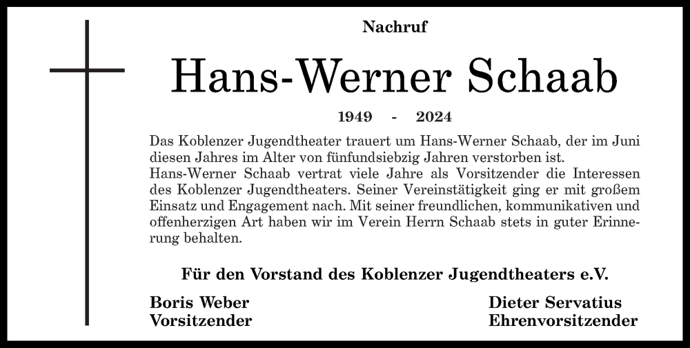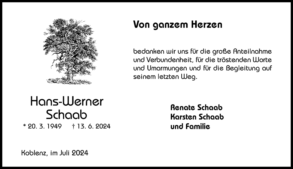 Hier finden Sie alle Traueranzeigen aus der Zeitung, die bisher für Hans-Werner Schaab erschienen sind. Weitere Traueranzeigen, die in der Zeitung erscheinen, werden hier ebenfalls aufgelistet