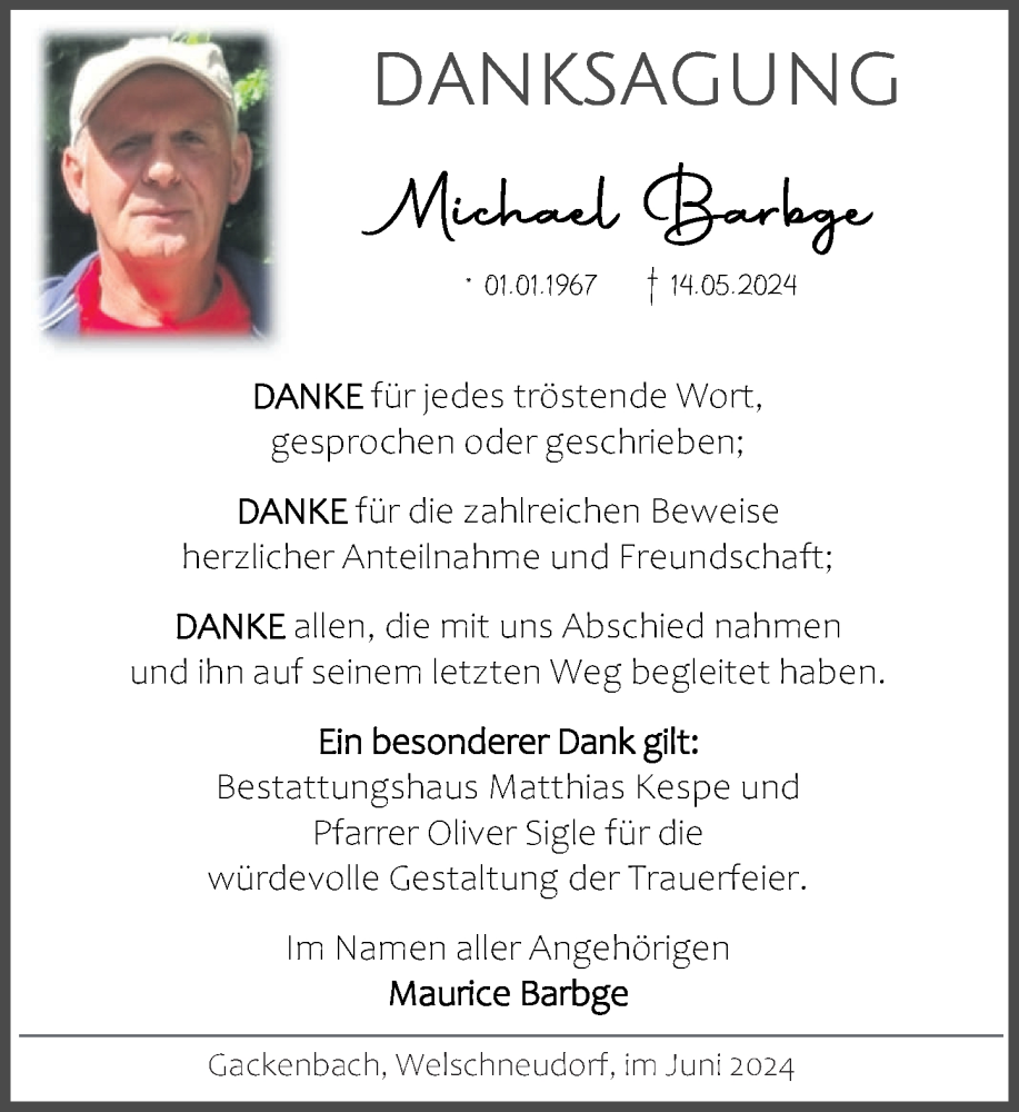 Hier finden Sie alle Traueranzeigen aus der Zeitung, die bisher für Michael Barbge erschienen sind. Weitere Traueranzeigen, die in der Zeitung erscheinen, werden hier ebenfalls aufgelistet