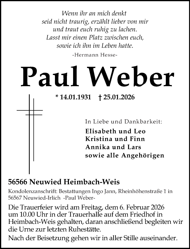Hier finden Sie alle Traueranzeigen aus der Zeitung, die bisher für Paul Weber erschienen sind. Weitere Traueranzeigen, die in der Zeitung erscheinen, werden hier ebenfalls aufgelistet