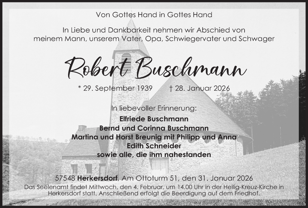 Hier finden Sie alle Traueranzeigen aus der Zeitung, die bisher für Robert Buschmann erschienen sind. Weitere Traueranzeigen, die in der Zeitung erscheinen, werden hier ebenfalls aufgelistet