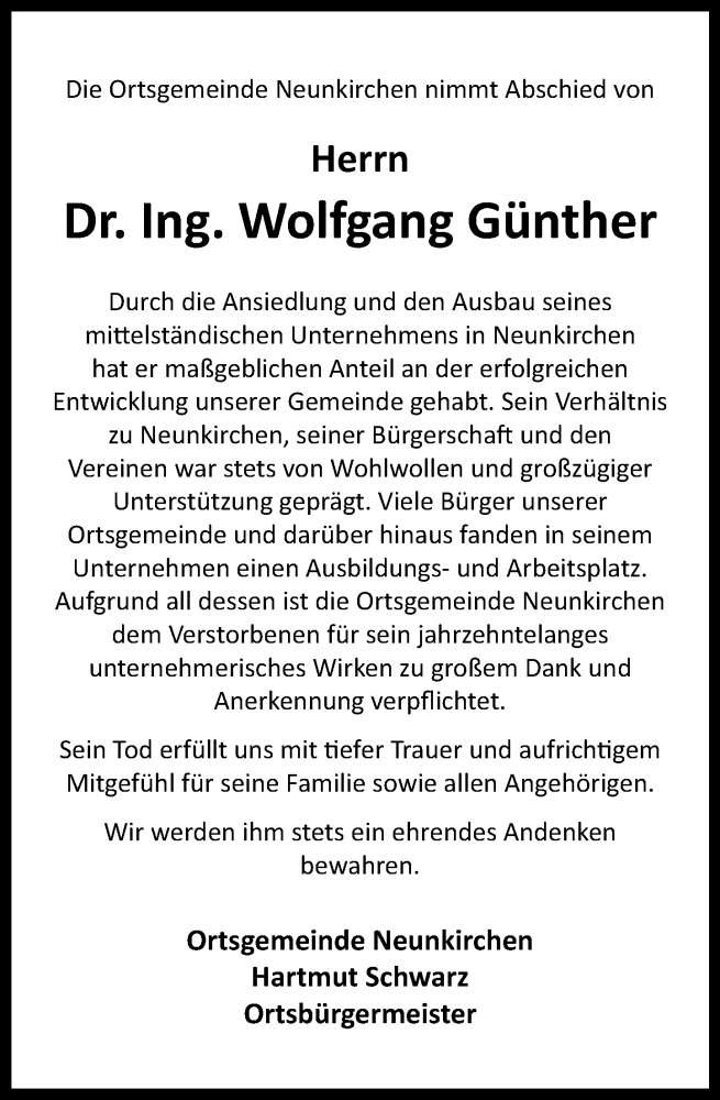Hier finden Sie alle Traueranzeigen aus der Zeitung, die bisher für Wolfgang Günther erschienen sind. Weitere Traueranzeigen, die in der Zeitung erscheinen, werden hier ebenfalls aufgelistet